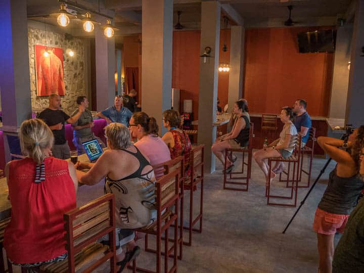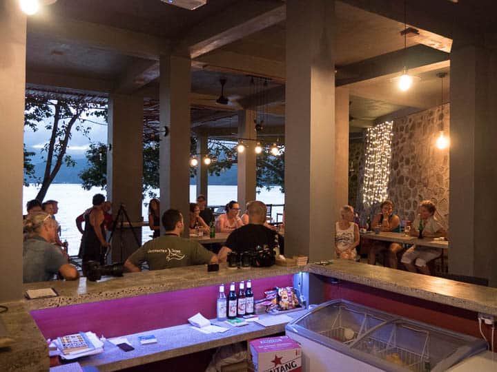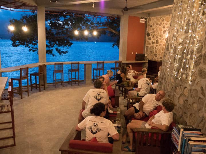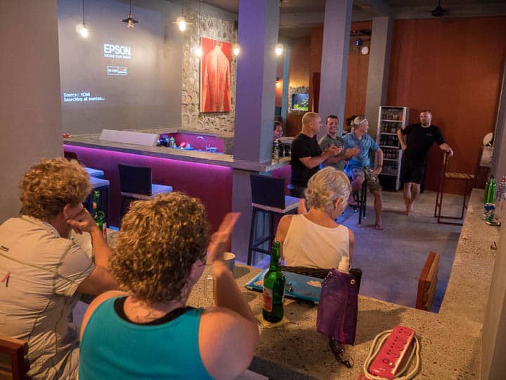 One of the best things about our Photo Workshops is not the learning or the diving but the socializing with fellow participants.  As part of our photo weeks, we always gather together in the evenings to discuss post processing and critique photos.  These late afternoon sessions are extremely valuable to the guests as they have the chance to discuss everything one to one with the instructors.  Topics include critiquing the days photos, asking technical questions, and of course discussing the best way to post process an image. Of course a beer or cocktail is the perfect companion during this time!