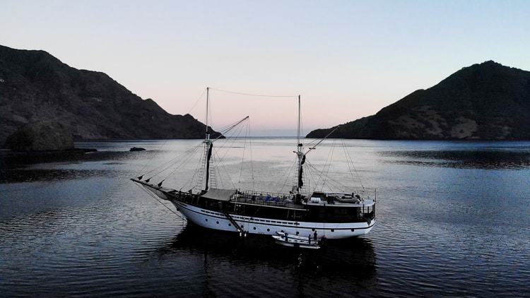 Even though we could all still have the option to do at least one dive. On this final day of activity we all decided to skip diving. So instead of diving we decided to go and visit the ranger station in Rinca Island early in the morning. Generally early in the morning is the best time to visit as more animals are in the area and they are more active than in the rest of the day when the sun os hotter. We could see several Komodo dragons and being mating season, we were so lucky to see two of them “cuddling” together. We could also see monkeys, deers and water buffaloes. Once we came back we had a nice breakfast and then we proceeded with sailing. It was incredible to see all the crew of the MSY Samambaia working together to unfold the sails, it takes some real skills to do so. It was also quite windy but the crew could get the job done very well. The Ship is beautiful, one of the best line we can see in Indonesia. When the seals are unfolded this beautiful ship turn into sublime. We could all get on the tender boats and take some beautiful pictures of the ship. After lunch we moved west and anchored by the island of Kaaba were in the evening we were going to see the flying foxes flying by, however before that, we went to pay a visit to the village and some of us went to visit the bat cave up in the hill. On the way to the top of the hill we could see a Komodo dragon moving in the high grass. I twas very impressive. The Bat cave did not disappointed and there were 100s of bats inside. We then returned to the ship to watch the colony of bats taking off from their island at sunset and this was going to be the end of our beautiful journey together. The following day we were all going to fly out from Labuan Bajo to our next destination.Departure Day from Labuan Bajo - Flores