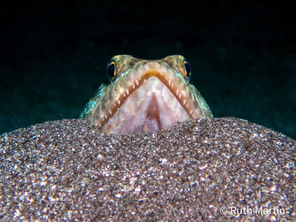 Not to be outdone by the cephalopods, the cryptic fish were also out in full force. One of the most sought after subject were lemon gobies in a bottle and these were easy to find. Of course the hairy frogfish was another requested critter and TK was the place for this cute and cuddly critter. With the great weather we also took the opportunity to head further north in the strait to sites such as Angel Windows and California Dreaming. These “reef” sites offered the opportunities to photograph denise and pontoon pygmy seahorses as well.