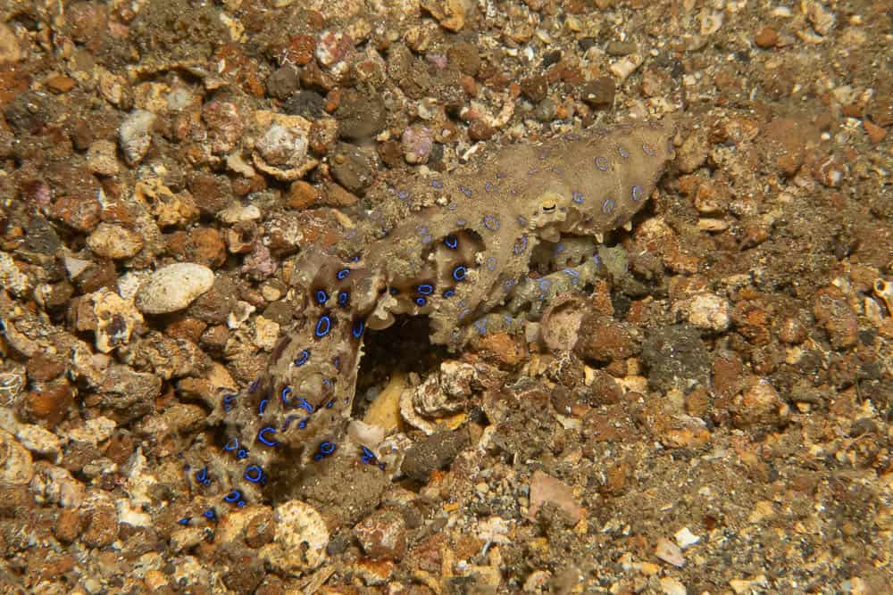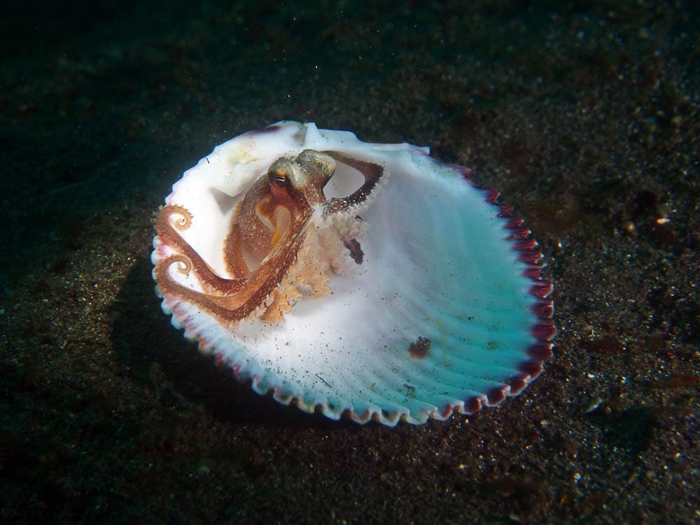 Of course a trip report would be remiss if we didn’t discuss the critters that we encountered. First on the list is the sheer number of blue ring octopus we photographed. We were finding these popular cephalopods on almost every dive site in a variety of environments. The most memorable was a mating pair which two lucky photographers were able to capture on camera. Other octopus were also found including reef octopus, wonderpus, mimic octopus, and even a relatively rare algae octopus.