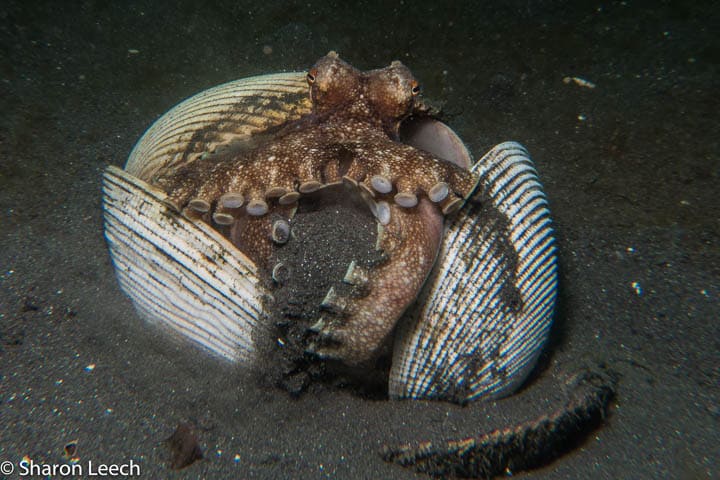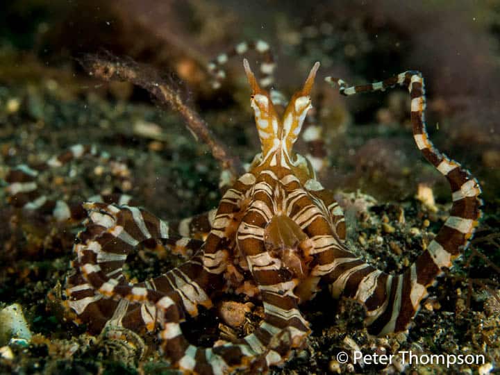 On several nights throughout the week we also presented a few things after dinner but not during nights when people were enjoying a night dive. NAD Lembeh offers the wonderful “Black Water” night dive option and our group was eager to take advantage of that option. On the first black water night dive they even came back with photos of the incredible juvenile pelagic version of the Wonderpus. Encounters throughout the week were varied and all of the stars of Lembeh paid a visit. Flamboyant cuttlefish, wonderpus, mimic octopus, a blue ring, the hairy frogfish, seahorses of all kinds, cuttlefish, hairy shrimp, ghost pipefish and too many more to list.